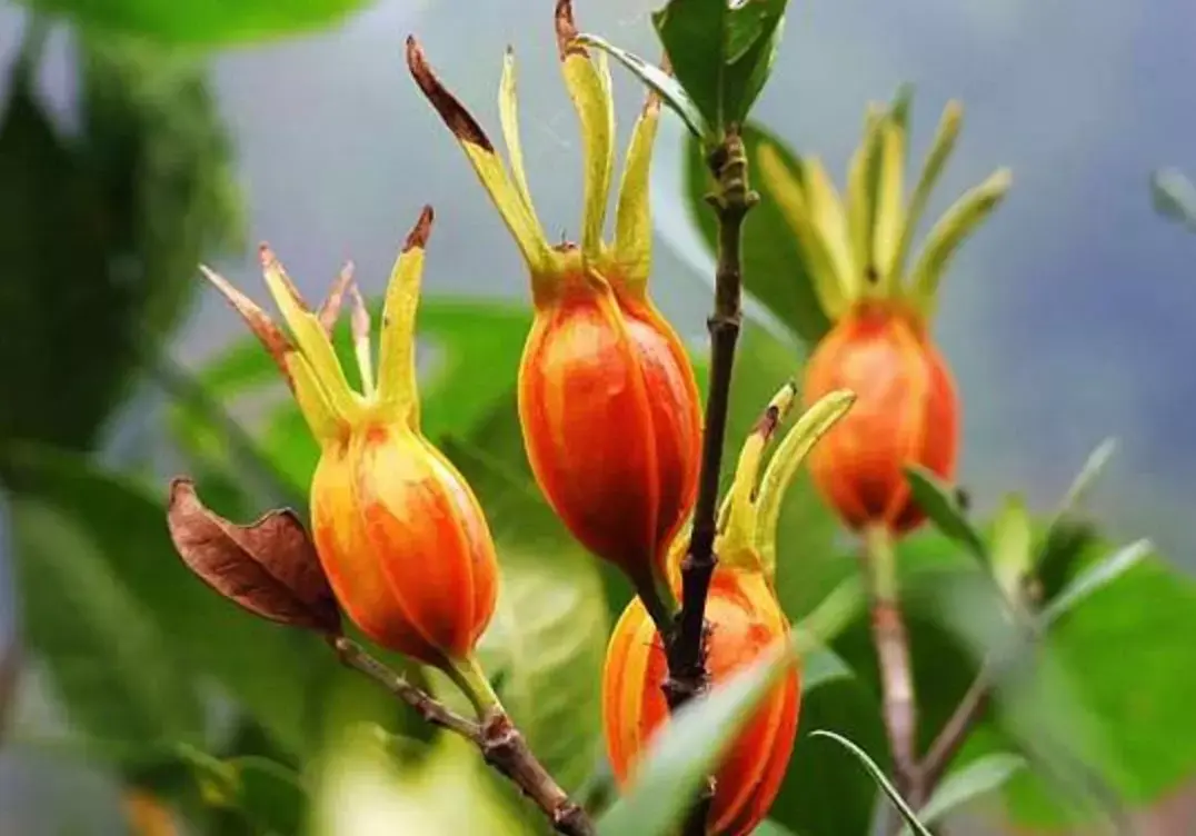 栀子属常绿灌木,开白花,果实中可作染料的色素主要成份是栀子苷。先将其果实在冷水中浸泡,再经过煮沸,即可制得黄色染料。